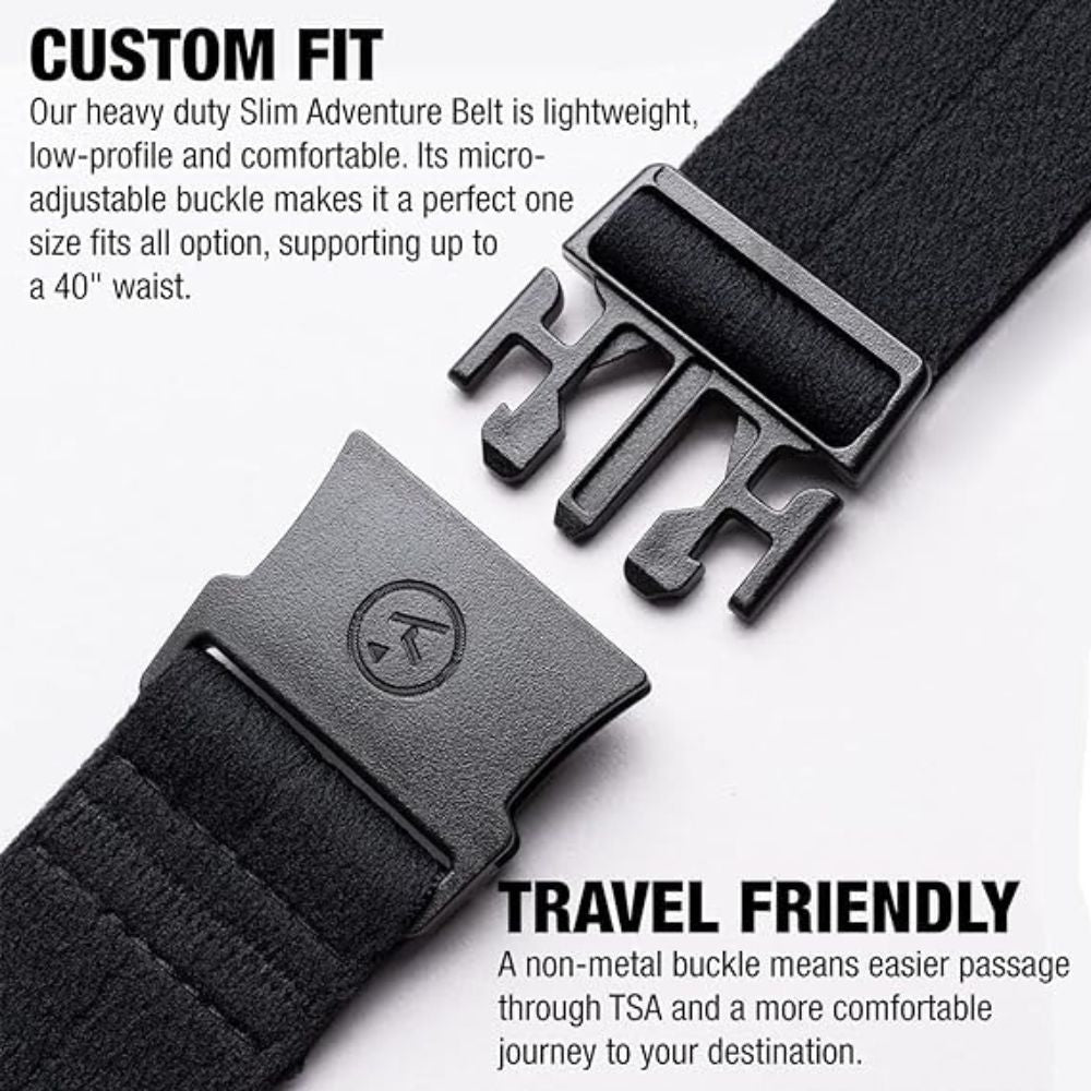 VERSATILE & CUSTOM FIT: This adventure belt is perfect for hiking, biking, skateboarding, climbing, skiing/snowboarding, and virtually any other activity. The micro-adjust belt buckle ensures a one-size-fits-all sizing, supporting up to a 40" waist.