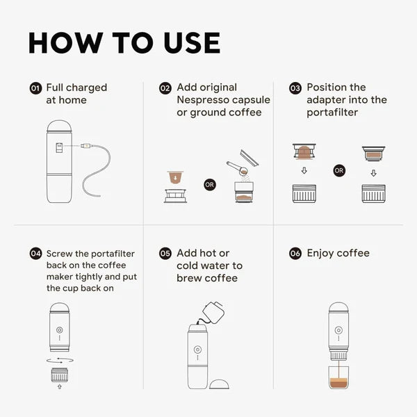 iCafilas 2-in-1 Portable Espresso Maker with Heating - Brown
