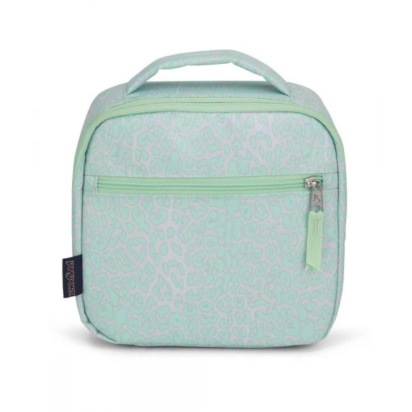 JanSport Lunch Break Box Bag Digital Cheetah Padded grab handle. External zippered pocket for utensils, napkins or other small items. Angled opening allows the Lunch Break to lay flat for use as a tray Insulated main compartment keeps items hot or cold.