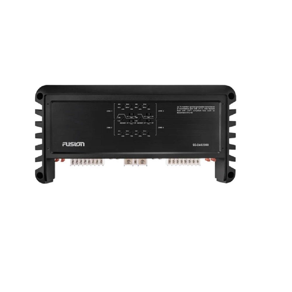 The SG-DA82000 is Fusion's first 8 channel, Class-D Hi-Fi marine amplifier. The key benefit of a Class-D amplifier is that it has a low battery drain with high output, making this the perfect amplifier for the marine environment. The SG-DA82000 also has conformal coated PCBs for maximum product life and performance, plus the amplifier chassis is a heat sink, to reduce component core temperature and increase efficiency.
