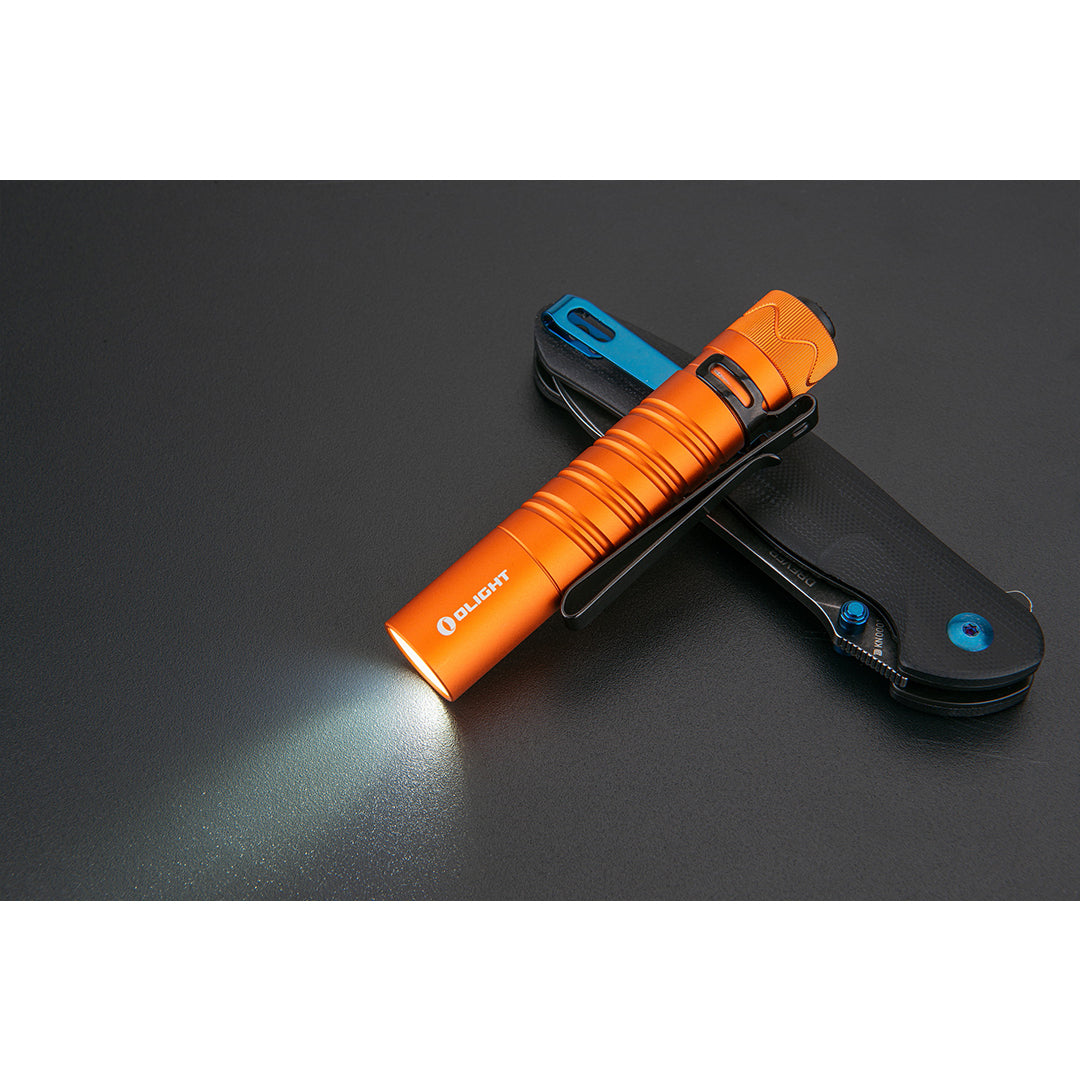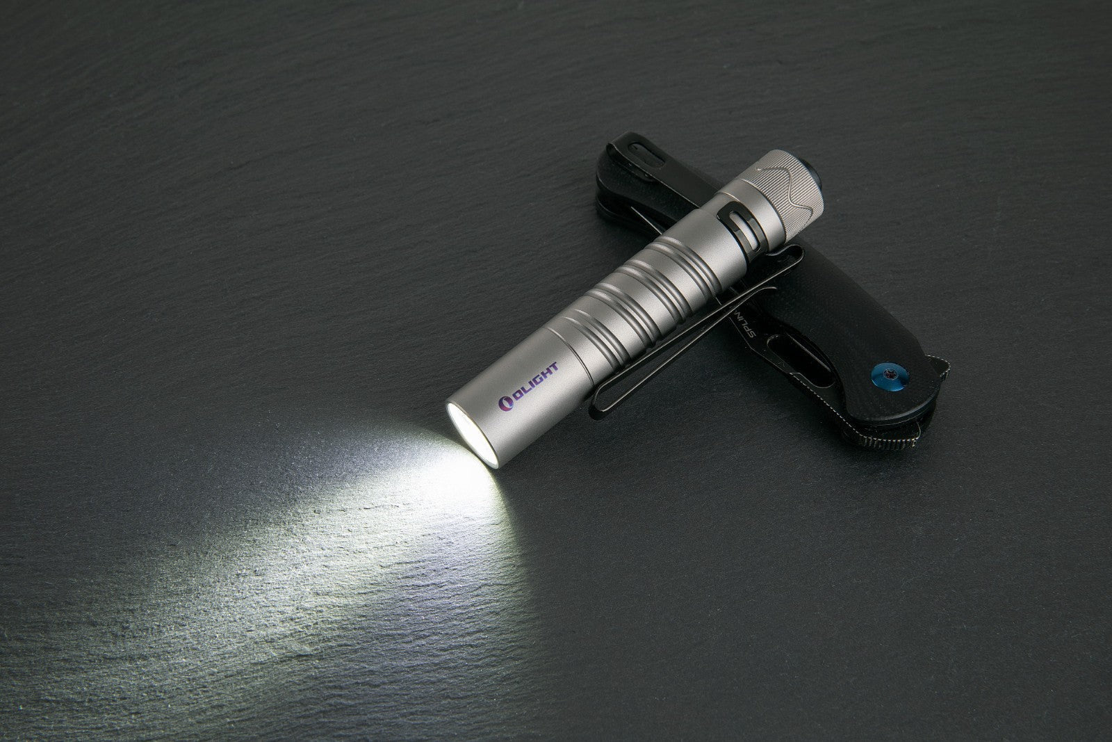 Rechargeable Battery: Customized battery that integrates a Type-C interface for charging. Enough power for 37 hours of use on 15 lumens after fully charged. It delivers a max output of 350 lumens and a max throw of 64 meters. Access momentary on and shift between modes (15/350 lumens) with a non-slip tactical tail switch. Olight I5T Powered by a convenient and widely available single AA battery, output 300 lumens and 60-meter beam distance. Quick mode shifting all through a convenient tail switch, and with small pearled silicone surface for an anti-slip experience, dual direction pocket clip can achieve hands-free.