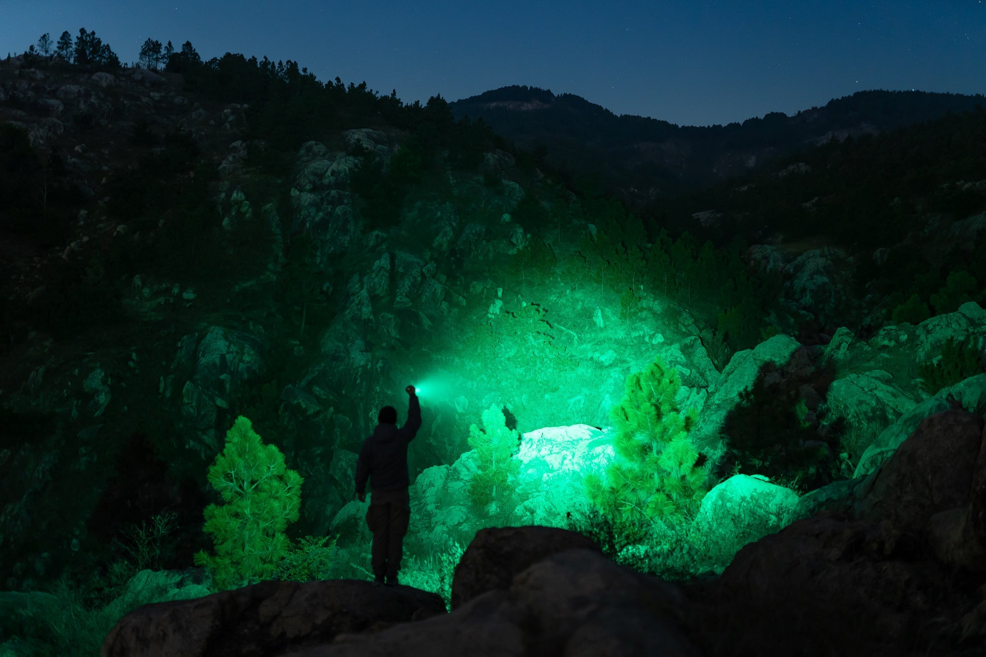 RGB Green Light Mode 3: 180~170~90 lumens - 490+10+10 minutes - 80 meters