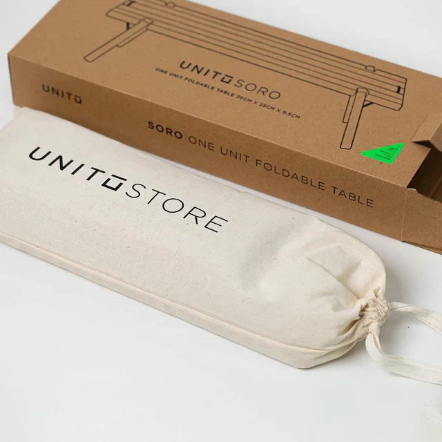 The Unito Soro! table is the perfect addition to your outdoor gear. It's easy to use, sturdy, and versatile, serving as a small coffee table or a half/full unit. Handmade in Thailand from teak wood, each piece is unique, making it a special addition to your collection. The table comes with a handy storage bag, making it perfect for long hikes or casual gatherings at the park.