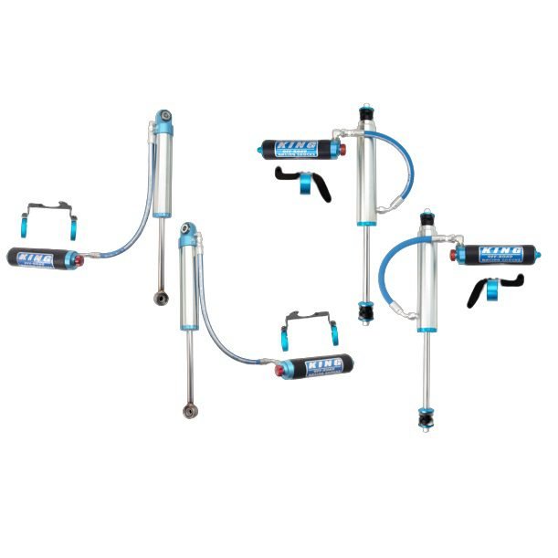 King?s OEM Performance Upgrade Kits provide a bolt-on suspension system that dramatically improves your on and off-road performance. Our kits are designed to maximize wheel control by damping every inch of shock movement in a smooth and calculated manner, allowing the driver to obtain more control over the vehicle. Each kit has been subjected to extensive dynamometer lab testing as well as punishing real-world testing to develop the optimal damping curve for each vehicle. Every kit is hand built in the USA with top-of-the-line materials machined to precise tolerances and assembled by our experienced shock technicians. All King shocks have the ability for custom valve adjustments with simple hand tools and are designed to emulate the performance and tunable design of our high-end race shocks. All of our OEM Performance Upgrade Kits come complete and provide all necessary hardware as well as detailed instructions for installation on your vehicle. Along with the durability to last longer than any factory-equipped option, King Shock?s completely serviceable design allows them to be fully rebuilt after many years of extreme use. See what a difference a set of King Shocks can make on your vehicle. Our experienced shock technicians are always a phone call away to help should any questions arise during installation or use. Nothing rides like a king.