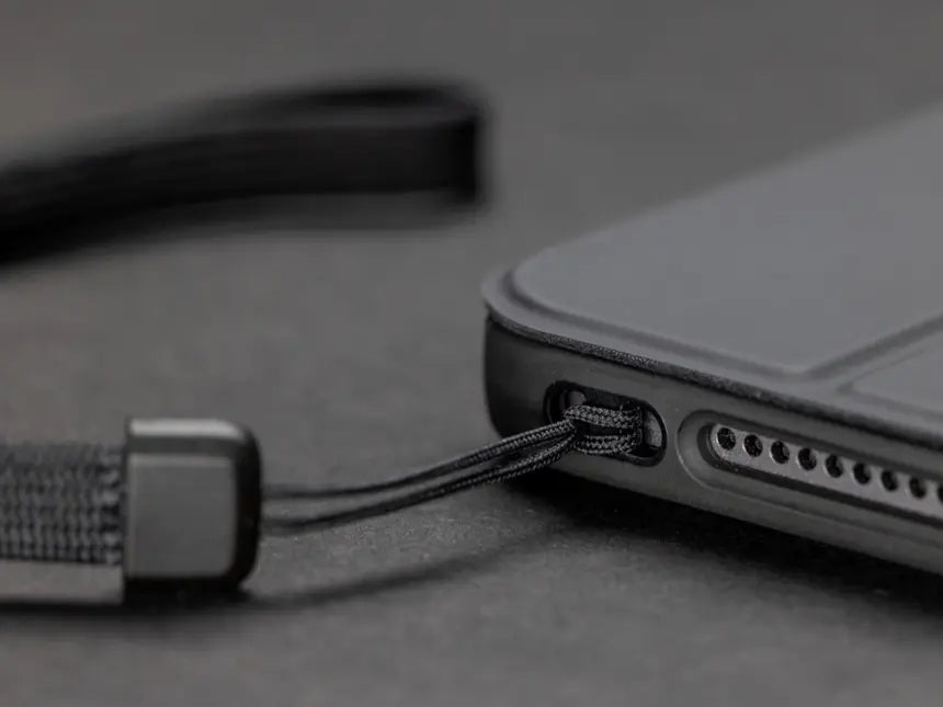The Lanyard can be attached to the tether points on compatible Quad Lock® Cases (those released after September 2023) and the end cap of the Quad Lock® Tripod/Selfie Stick.