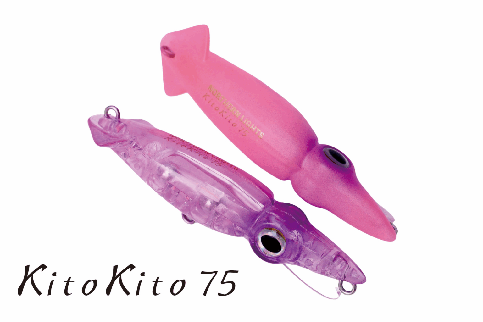 "KitoKito" was developed by NORTHERN LIGHTS, based in Toyama, Hokuriku, with the goal of creating the world's most stationary lure. It targets even large predators that feed on plankton (free-floating organisms). The unique center-of-gravity shifting system, which allows the main weight to move, achieves stable casting distance. The front stabilizer, which takes advantage of the squid's shape, maintains the target range, while the rear keel significantly improves straightness during retrieval. When stopped, the lateral water current creates a swaying action. It also serves to limit the hook's range of motion, allowing for the use of a larger, stronger hook than lures of the same size, expanding the targeting possibilities. The floating feel and presence unique to plugs allow for approaches that are difficult to achieve with worms, such as floating and catching. Experience the strength of this novel squid-shaped lure, known for its "weakness."