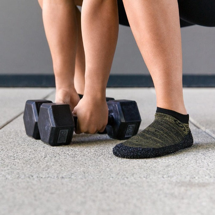 • Fitness: Socks, flip-flops, running shoes. Skinners disrupt this trinity of gym footwear and combine the advantages of each – the freedom of a sock, the great grip and the basic protection of shoes.