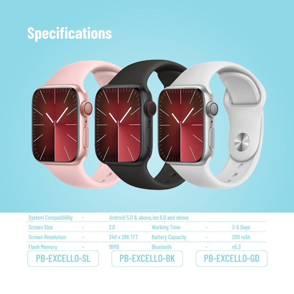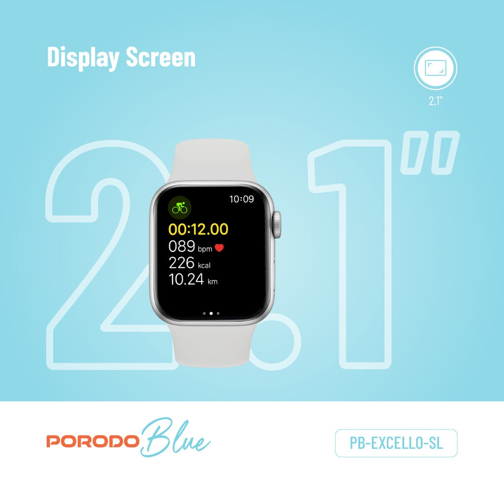 The Porodo Blue EXCELLO Smart Watch offers a stylish yet pragmatic design and works on devices with Android 5.0+ or iOS 9.0+ operating systems. Its 2.0-inch TFT display with a resolution of 240 × 296 presents crisp and bright visuals. Running on a 200mAh battery, the device lives for about 3 to 5 days before needing a charge. Bluetooth connectivity of V5.3 makes sure of stable gluing of the pairs. In terms of water protection, it is IP65 rated, preventing light splashes or sweat; hence it can be worn all day. Activity and health monitoring features are embedded to help you follow your fitness. The watch supports Bluetooth calling, allowing you to answer calls on it for convenience or to have a hands-free conversation. The Porodo Blue EXCELLO Smart Watch merges style with practicality inside a fabulous device, whether for fitness or casual use.