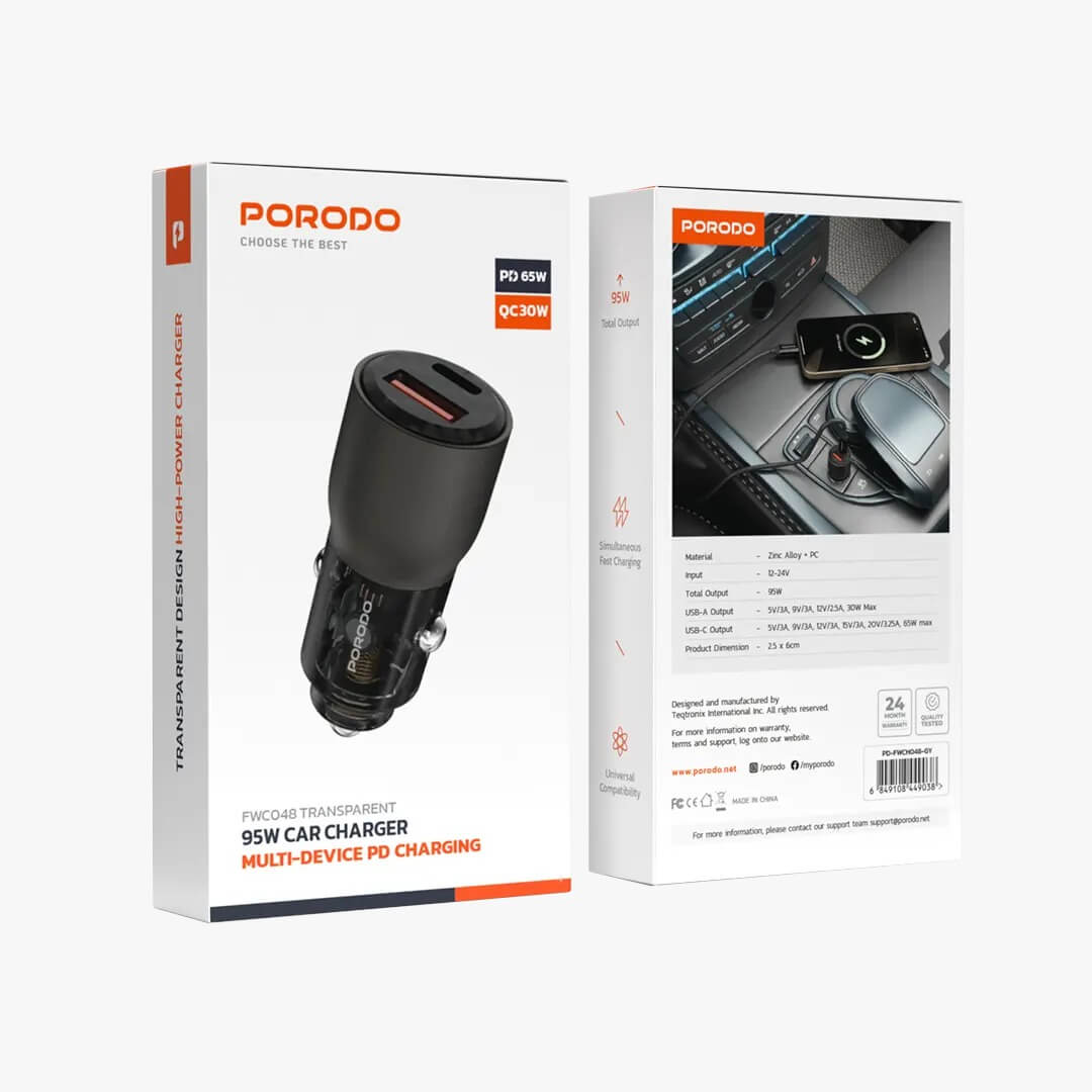 Porodo 95W Car Charger Transparent Multi-Device PD Charging