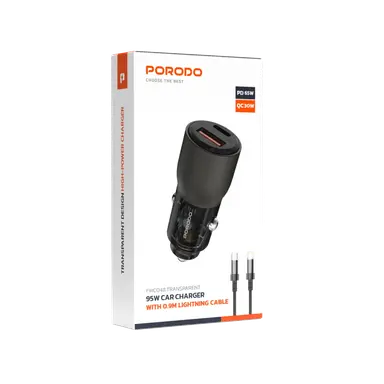 Porodo 95W Car Charger Transparent With 0.9M Lightning Cable