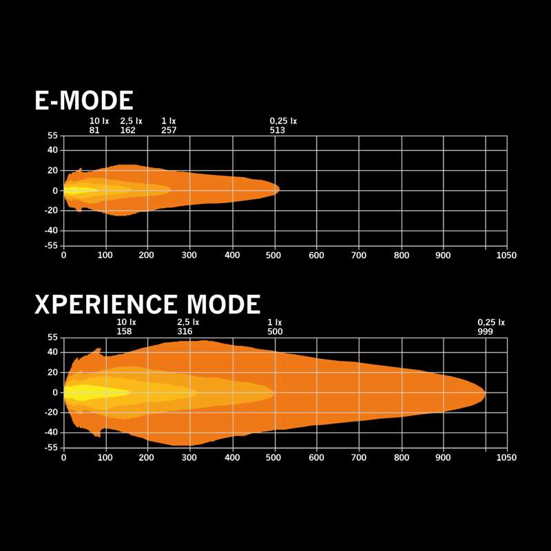 1 lux @: E-mode: 260m / Xperience mode: 663mm