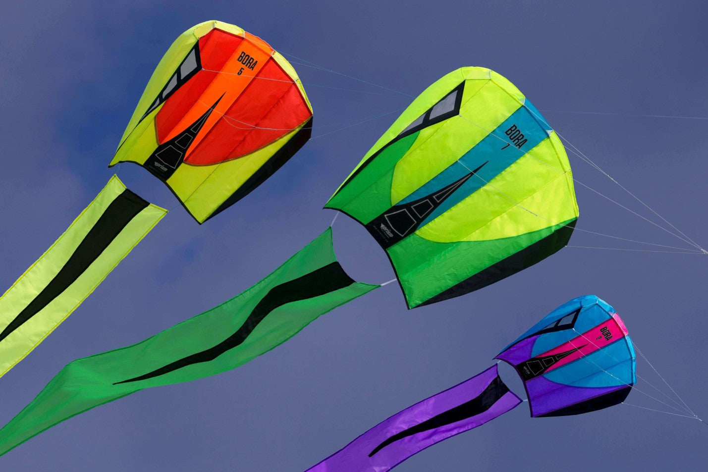 Bora comes in two sizes with 5 and 7-square-foot sails. They’re all easy to handle and quick to launch. Just attach the string and let the wind fill the sail – there’s nothing to put together and no parts to lose.