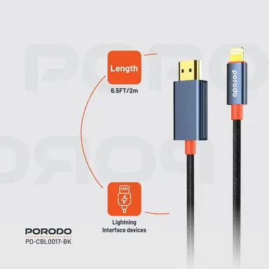 Get the exceptional video quality you're looking for with the Porodo Alloy Woven Lightning to Hdmi Cable, which guarantees exceptional viewing quality and a longer length that gives you added comfort and flexibility.
