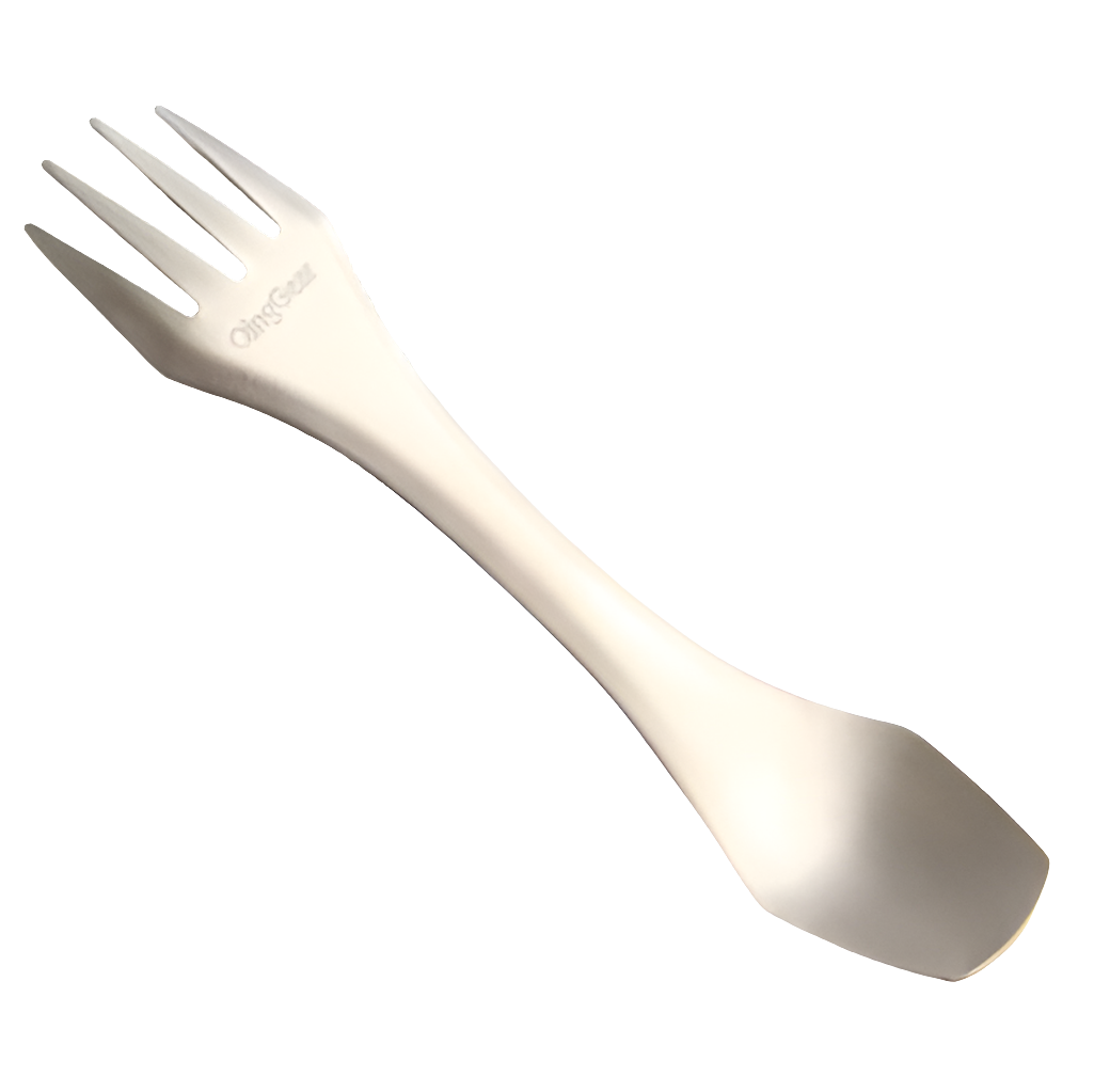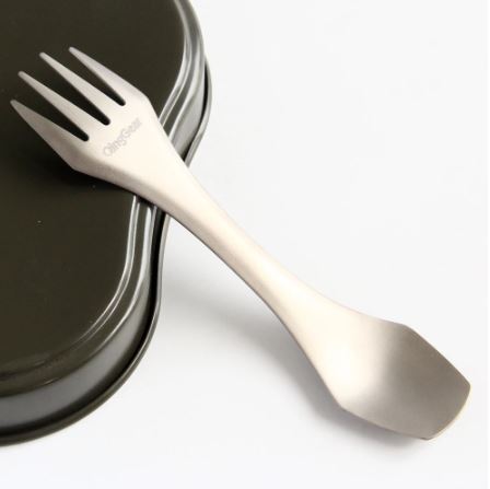 Made with Titanium material, light weight, durable ,easy to carry.    Spoon-fork-knife 3 in 1 combo with serrated edge on the side of fork. The best advantage for this product is the spork combine the spoon and fork in one body.