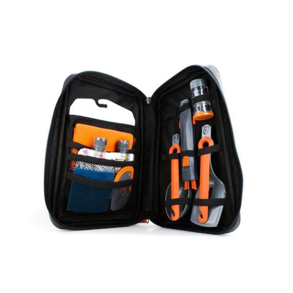 Includes: Collapsible Whisk, Pivot Spoon, Pivot Spatula, Spicer, 2 Condiment Containers, Cutting Board, Scrubber, Scraper, Camp Towel, Ballistic Nylon Case