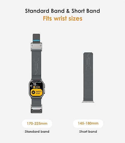 • Double strap compatibility: the standard strap is suitable for a wrist range of (170-225mm) and the short strap is suitable for a wrist range of (145-180mm). So you don't need to worry about wrist size discrepancy