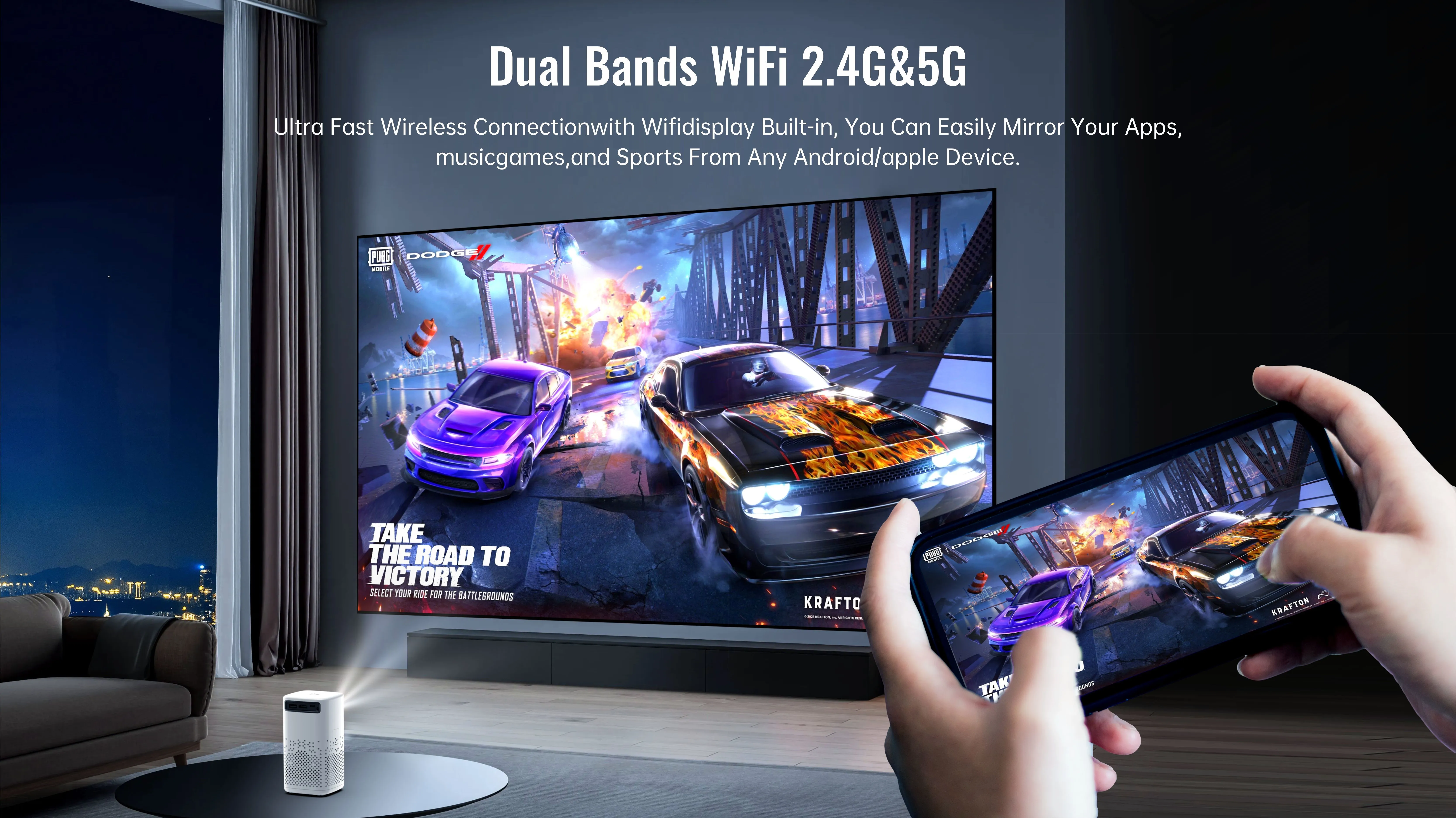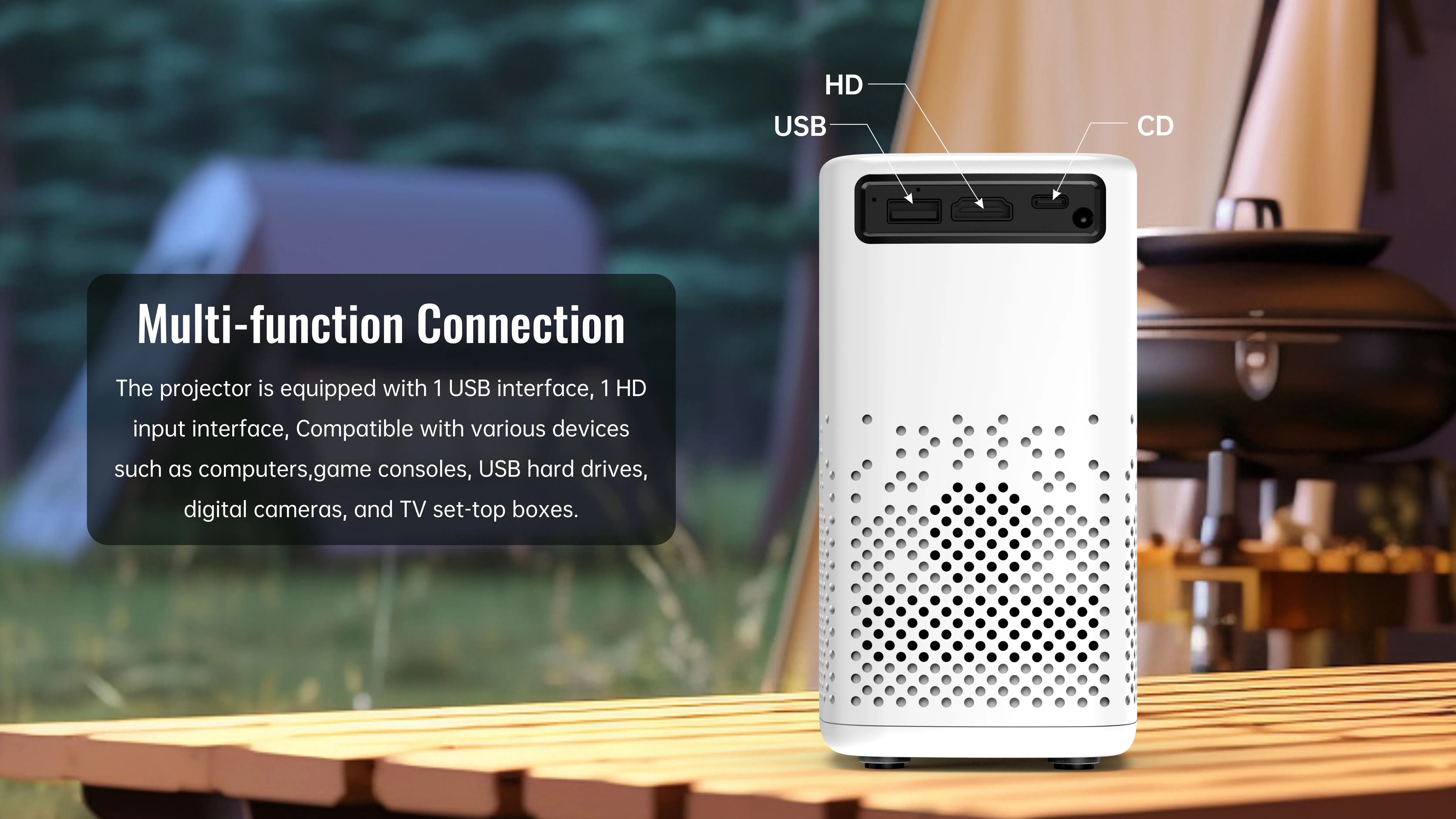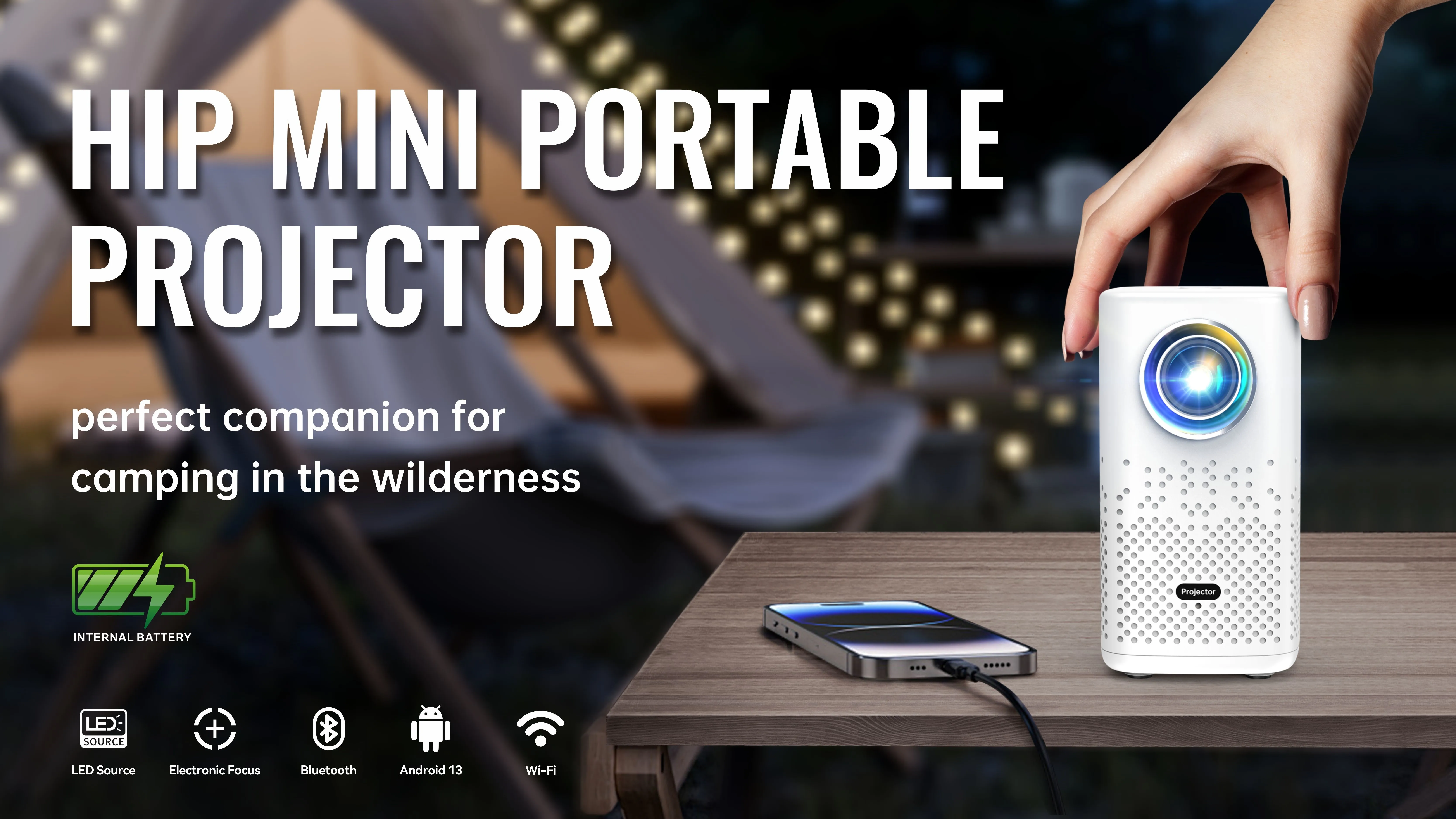 H1P Portable 4K Projector Adjustable 100" Screen USB Phone Sync Ultra-Short Focus 120 Brightness Great Gift