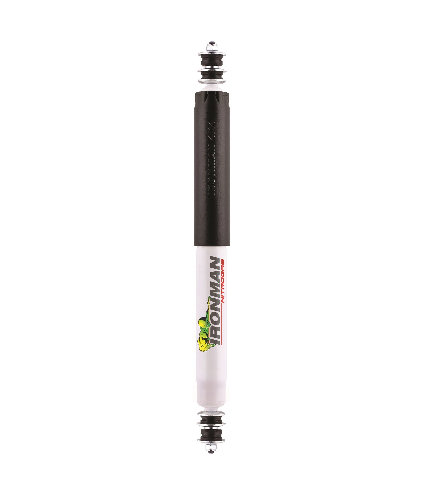 Ironman 35mm bore Nitro Gas Shocks are the rugged all round 4×4 performance shock absorber. Ironman Nitro Gas Shocks provide exceptional performance for both standard and raised height 4×4’s whilst delivering superior ride control and comfort both on and off road. Improve stability when towing or carrying a load. Each and every Ironman shock absorber is force velocity tested before packaging to ensure all parts received are uniform and within operating specification. High quality materials such as German Fuchs High temp shock absorber fluid, Japanese NOK multilip seals are used. Strength and durability requirements are sorted by the use of re-enforced single piece eye rings and stems. Rubber shock absorber bushes are used by Ironman, this is to promote maximum flexibility and reduction in unwanted side load and NVH (Noise Vibration Harshness) transmission which often causes seal failures in other brand shock absorbers using Polyurethane.