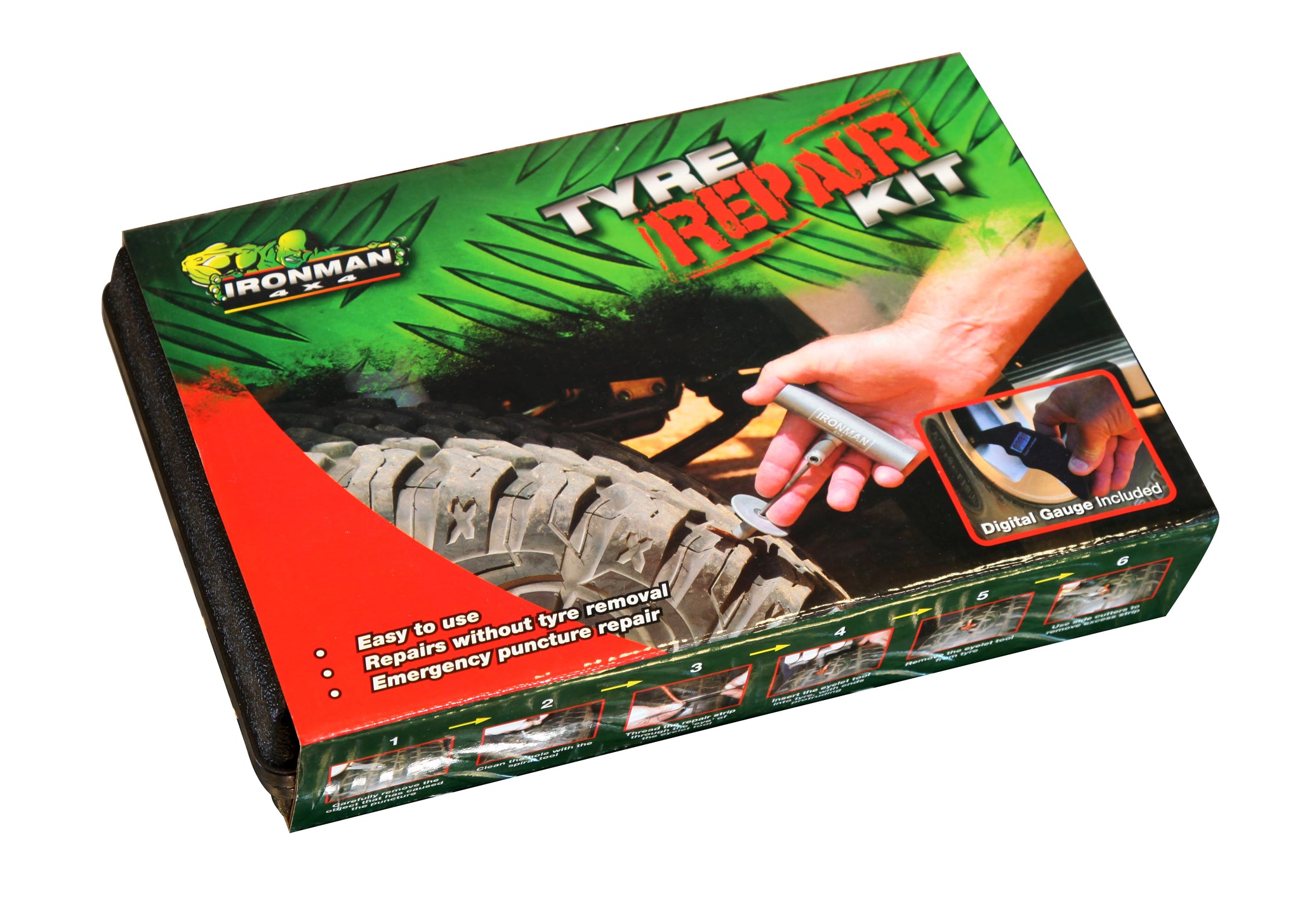 Ironman 4x4 - Tire Repair Kit With Digital Pressure Gauge Includes 30 Repair Cords - SLH