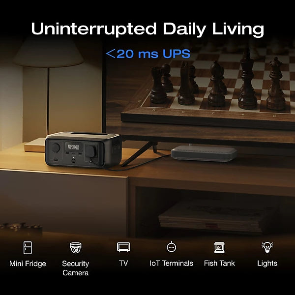 Equipped with a 245Wh capacity and 300W output, RIVER 3 Plus can power a Wi-Fi router for up to 15 hours. Plus, it can run pretty much any office appliance, including basic gaming computers for at least 18 minutes, allowing for a safe shutdown and completion of ongoing tasks.