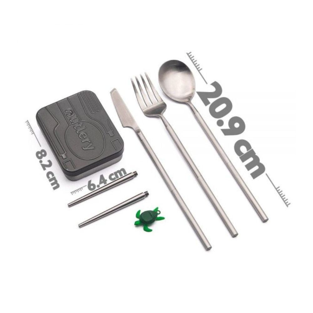 Comes in a small metal container, this collapsible cutlery set makes your own fork, knife, spoon and chopsticks on hand as convenient as possible.